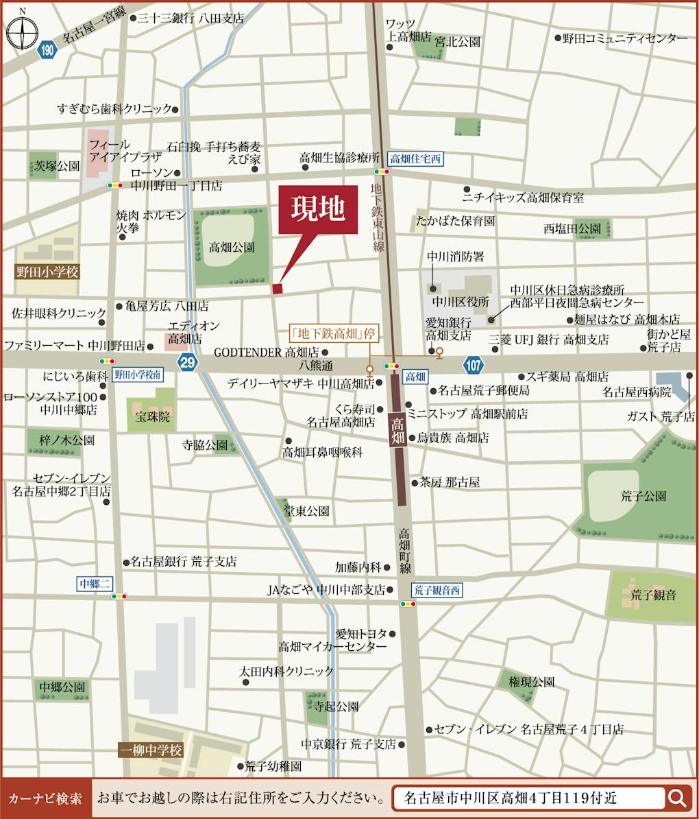 | 交通 | 地下鉄東山線「高畑」駅徒歩約4分 地下鉄東山線「八田」駅徒歩約11分 JR関西本線「八田」駅徒歩約13分 |