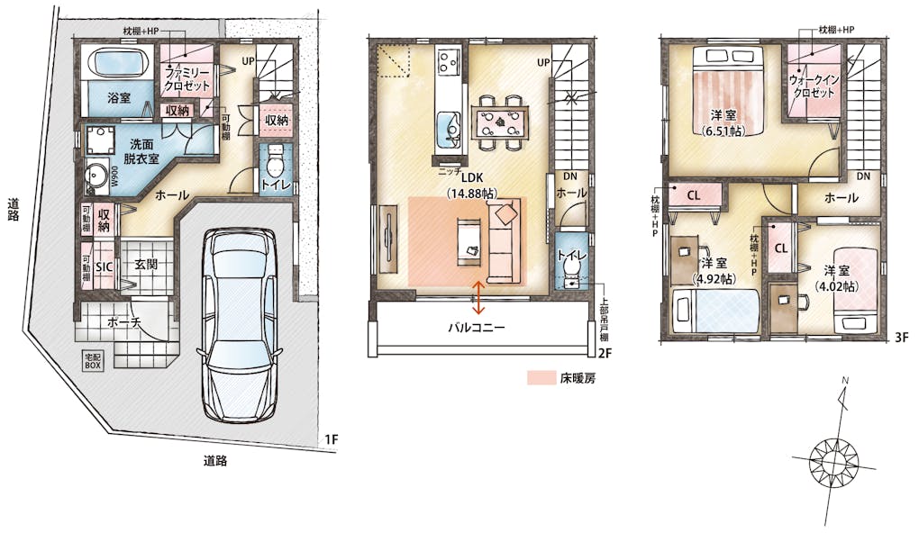 | 建物面積 | 97.38㎡(内車庫面積9.72㎡含む) |