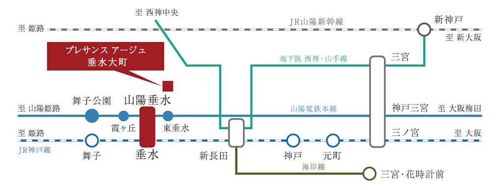 | 交通 | JR神戸線「垂水」駅まで自転車5分(徒歩19分) 山陽電鉄本線「山陽垂水」駅まで自転車6分(徒歩21分) |