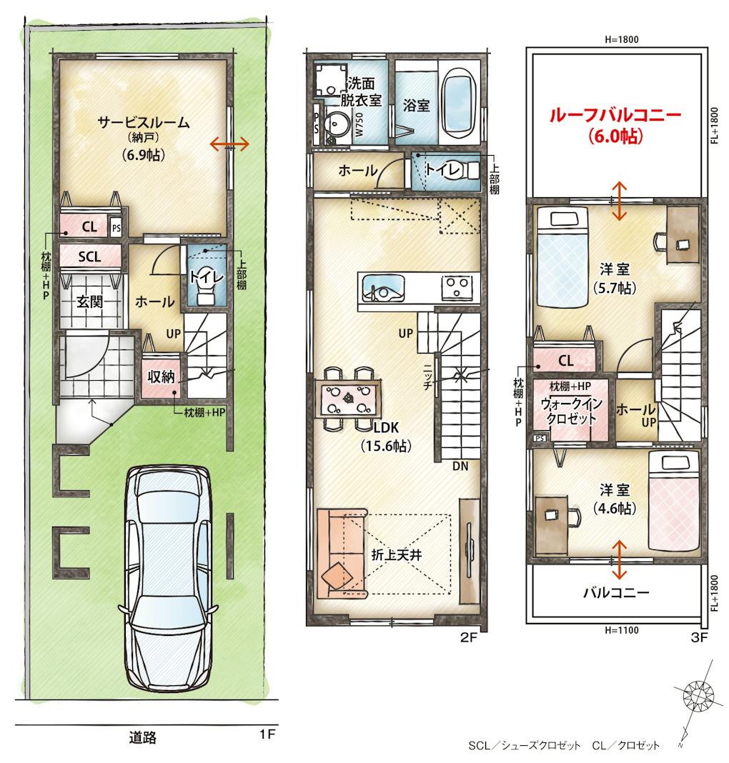 ・SCL、ホール収納、ウォークインクロゼットなど収納スペース豊富な住まい