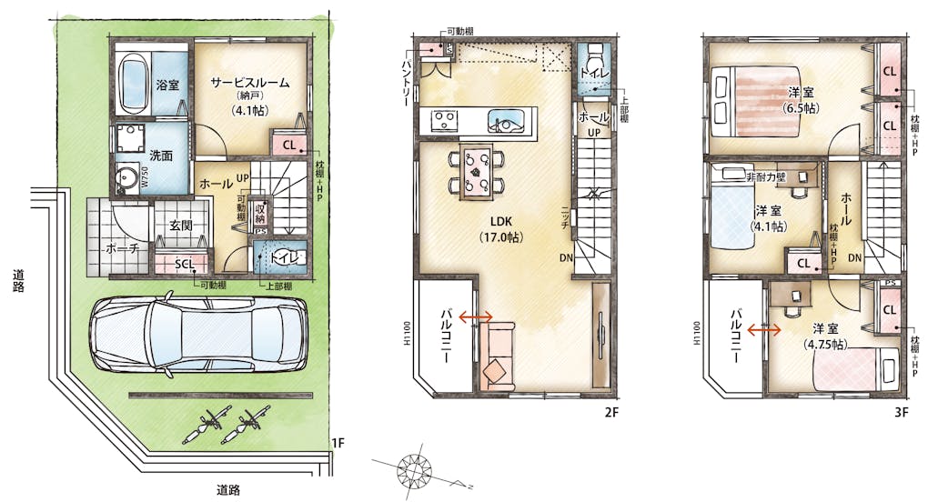 | 間取り | 2LDK+S(納戸)~3LDK+S(納戸) |